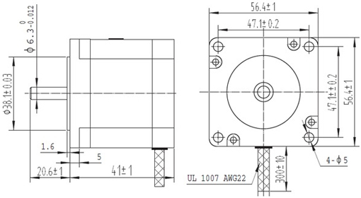 - Dimensions: 56,4 x 56,4 x 41 mm (NEMA 23)