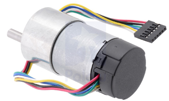 Motoréducteur (pour robotique, automate, etc...) avec encodeur (400 impulsions/révolution - Rapport: 1:6.25). Sortie sur connecteur femelle 6 contacts. Alimentation: 12 à 24 Vcc.