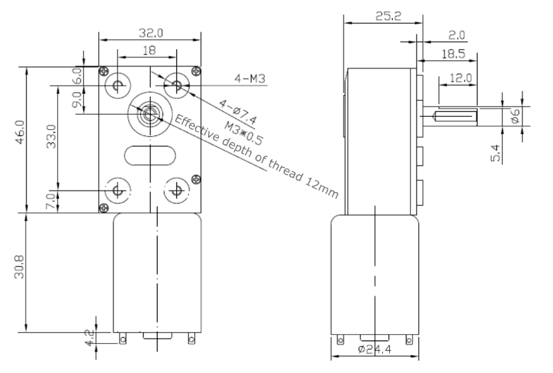 Motoréducteur à fort couple et faible vitesse de rotation. Alimentation: 6 Vcc. Vitesse: 160 rpm. Réduction: 1:37,3