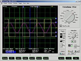 En mode oscilloscope, ce dernier dispose d’une base de temps (100 ns/div à 200 ms/div) et de niveaux d'entrée réglables (25 mV/div à 5 V/div) et de marqueurs OSD pour les mesures de tensions et de fréquences ou temps.