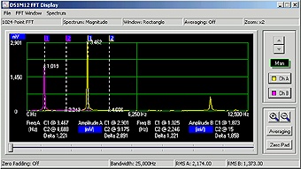 Le mini-analyseur de spectre (par transformé de Fourrier FFT) dispose de curseurs de mesure, d’une option d’élimination du bruit, de la possibilité d’imprimer et de sauvegarder les écrans ou encore d’utiliser différents algorithmes pour l’affichage: Hamming, BlackMan...