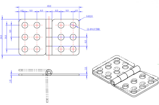 Ces charnières sont compatibles avec la plupart des pièces mécaniques et profilés Makeblock. Dimensions: 40 x 24 mm.