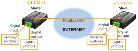 Le boitier CIE-H12A prend en charge le protocole Modbus TCP. Vous pouvez contrôler/surveiller des équipements/capteurs situés dans des endroits distants à partir d'un logiciel PC, d'une application mobile, d'une IHM ou d'autres appareils Modbus TCP.