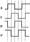 Les moteurs pas-à-pas les plus courants et les plus simples à gérer sont des modèles 4 phases qui nécessitent d'être alimentés selon des cycles pré-définis (voir ci-dessous). Grâce à l'instruction "BYTE OUT" et au schéma ci-après, il est très facile de recréer ses signaux. Le circuit intégré "ULN2803" servira d'interface de puissance. La vitesse de rotation du moteur sera fonction de la variable "I". Le sens de rotation du moteur pourra être changé en inversant simplement l'ordre d'exécution des instructions "BYTEOUT".