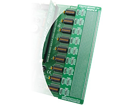 Cette plaque de prototypage pastillée avec trous métalisés et vernis épargne a été spécialement conçue pour la carte de développe-ment "BIGPIC6" (uniquement). Elle dispose d'une série de connecteurs HE10, permettant de l'enficher directement sur le côté la carte "BIGPIC6" (non livrée).