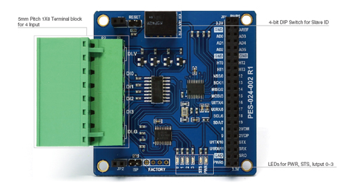 Platine PES2402 avec 4 entrées digitales pour capteurs