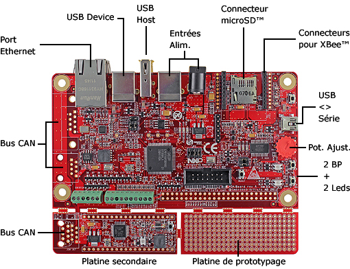 La platine secondaire est architecturée sur la base d'un processeur ARM™ de type LPC11C24 Cortex-M0. Dotée de 32 K de mémoire Flash et de 8 K de mémoire SRAM, cette dernière dispose: