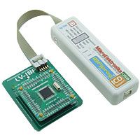 Cette platine économique (avec pied en caoutchouc), permet de recevoir et de programmer (via programmateur "Mikroprog") un microcontrôleur série PIC LV18FJ.