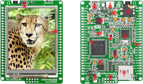Platine évaluation ARM Cortex M3 MIKROE avec écran TFT et audio