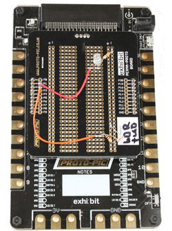 Cette "carte fille" pour platine "exhi:bit prototyping" (non livrée) vous permettra de disposer d'une zone de prototypage pastillées dont les pistes sont reliées comme sur une breadboard. Les connecteurs mâles pour enficher la platine sont à souder par vos soins.