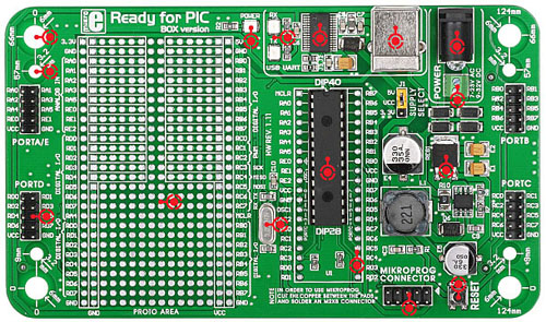 Il est toutefois possible d'utiliser un programmateur/débugger externe "mikroProg" si vous désirez effectuer du débuggage à l'aide d'un des compilateurs ("C" / "BASIC" / "PASCAL" de Mikroelektronika).