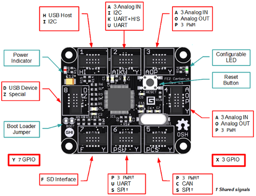 Architecturée sur la base d'un STM32F405 Cortex®-M4 168 Mhz, la platine "FEZ Cerberus" est une base hardware 100 % open source compatible avec les ressource logiciel ".NET Gadgeteer".