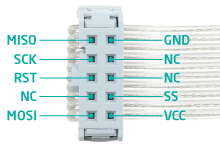 La liaison entre le "MikroProg pour STM32®" et votre microcontrôleur ne nécessite que quelques broches (la notice détail les différents cas de connexions en fonction de votre microcontrôleur).