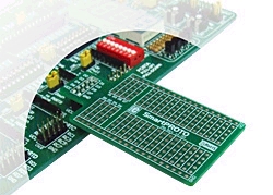 Cette petite platine est spécialement conçue pour la réalisation de prototypage rapide. Elle pourra facilement se raccorder sur les connecteurs HE10 des platines Mikroelektronika.
