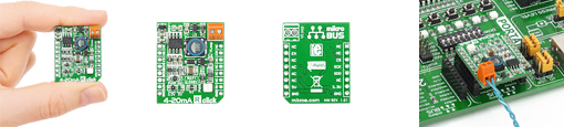 Ce module est idéalement conçu pour être utilisé en association avec le module émetteur "4-20ma T Click board".