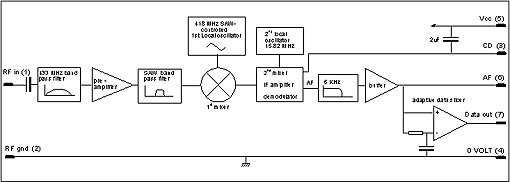 Ces modules hybrides sont des récepteurs "FM" 433,92 MHz (modulation de fréquence) large bande de type super hétérodyne à double conversion. Débit max.: 14 ou 40 Kbps.