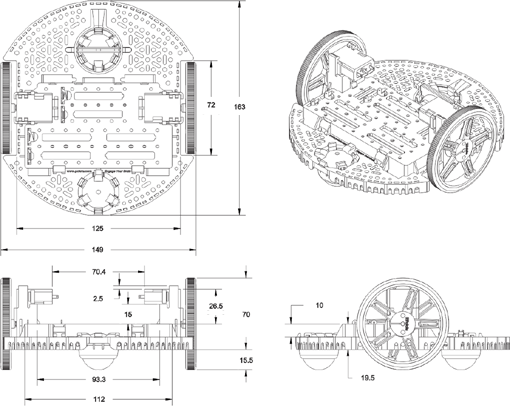 POL3506 Châssis robot roulant POLOLU Romi (163 mm)