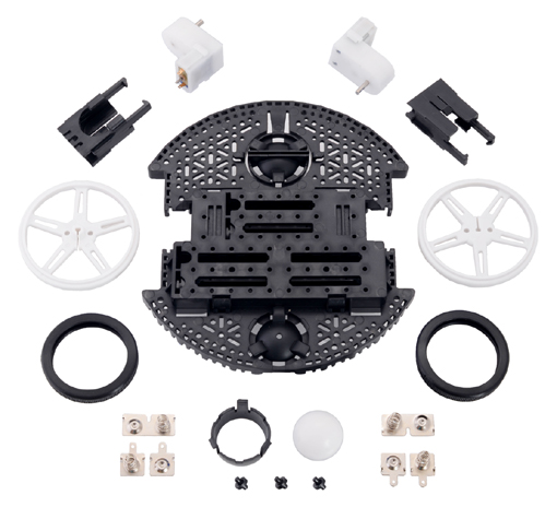 Ce châssis polyvalent livré en kit se compose d'une base ronde, laquelle est dotée de multiples perçages (idéal pour la fixation de votre platine, support de piles...). 2 roues motrices.
