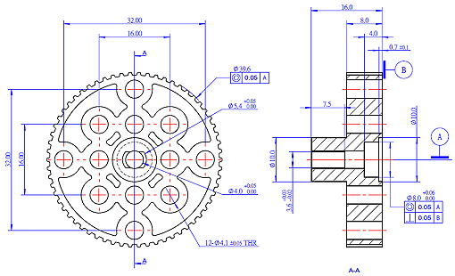 Jeu de 4 roues crantées en plastique avec 62 dents. Trou central de diamètre 4 mm. Compatibles avec les courroies crantées MXL et les chenilles à gomme Makeblock.