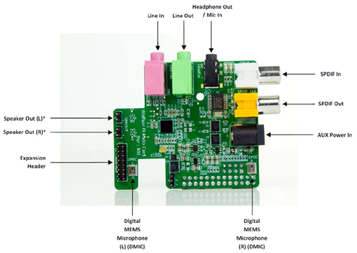Shield Wolfson Pi Audio RASPB14 - Amplificateur et Capture Sonore pour Raspberry Pi