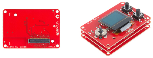 - 1 module "SparkFUN Block - OLED" (avec 1 mini joystick et 2 boutons-poussoirs)