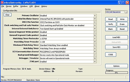 Le programmateur USB intégré du starter-kit "LV24-33v6" est en mesure de supporter de nombreux microcontrôleurs à technologie Flash. Il est livré avec son logiciel de commande qui vous permettra également (en association avec un des compilateurs présentés ci-dessous) de débugger votre application.