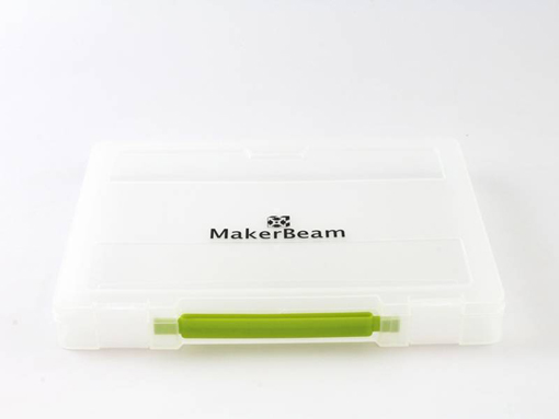 Ce starter-kit livré dans une mallette de rangement plate contient des mini-profilés OpenBeam anodisés alu (noir) de différentes longueurs ainsi que différentes équerres de fixation en plastique (en forme de "L" et "T").