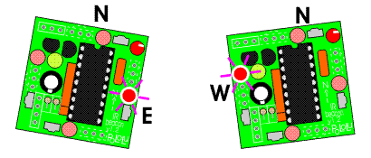 Les modules intègrent 4 diodes IR (émetteurs/récepteurs) associées à un petit microcontrôleur qui vous indiquera (par le biais de 4 sorties logiques et de 4 leds) la direction de l'autre module.