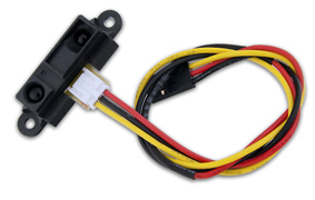 Ce module (livré avec son cordon avec sortie sur connecteur femelle au pas de 2.54 mm), permet de mesurer des distances (absolue ou relative) par détection infrarouge. Il dispose d'une sortie analogique (0,4 à 3,1 V). Portée 10 à 80 cm.