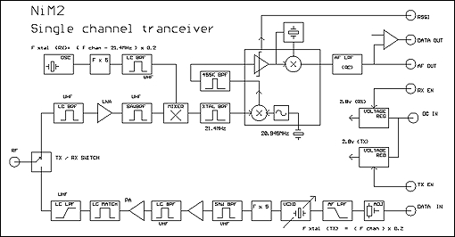 L'étage d'émission des modules "NiM2-434" est stabilisé par un VCXO contrôlé par un triple étage à quartz. L'entrée "TXD" de l'émetteur accepte à la fois les données numériques (0 - 1) ainsi que les signaux analogiques.
