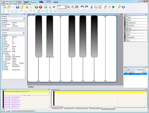 Bénéficiant d'une interface extrêmement intuitive et conviviale, Visual TFT génèrera auto-matiquement depuis vos réalisations un code source compatible avec les compilateurs Mikroelektronika (mikroC, mikroPascal et mikroBasic) pour microcontrôleurs PIC, dsPIC30, dsPIC33, PIC24, PIC32, AVR ou ARM™ (les compilateurs sont à acquérir séparément).